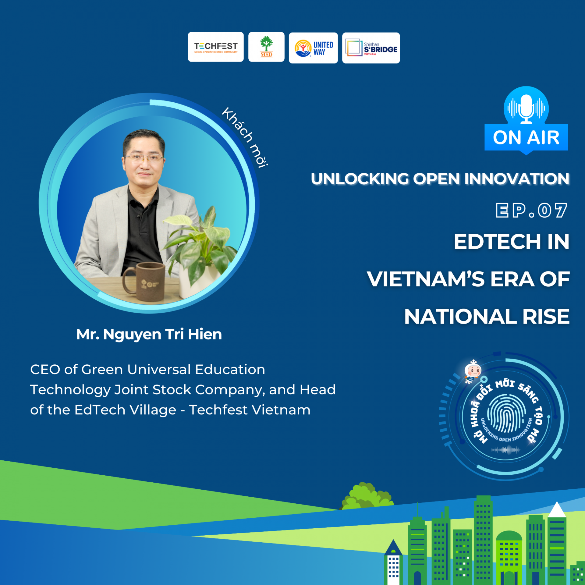 Unlocking Open Innovation podcast series Welcome to Episode 07 of "Unlocking Open Innovation," featuring the theme "EdTech in Vietnam’s era of national rise." In this episode, you’ll meet Mr. Nguyễn Trí Hiển – CEO of Green Universal Education Technology Joint Stock Company, and Head of the EdTech Village - Techfest Vietnam...