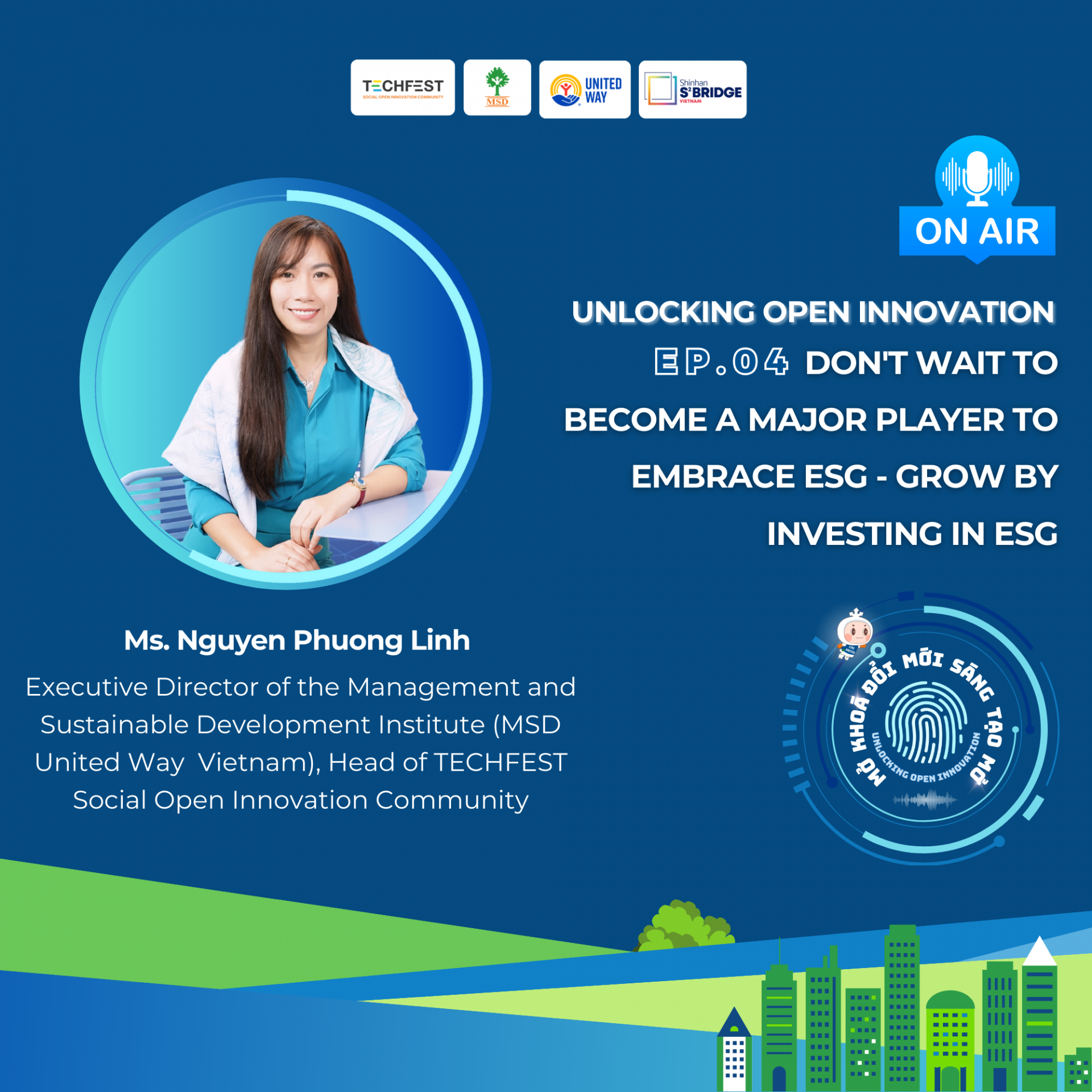 🎉Welcome to Episode 04 of the Unlocking Open Innovation podcast series! In this episode, we explore a hot topic that is gaining significant attention: ESG - Environment, Social, and Governance. Our special guest is Ms. Nguyen Phuong Linh - The Executive Director of the Management and Sustainable Development Institute (MSD...